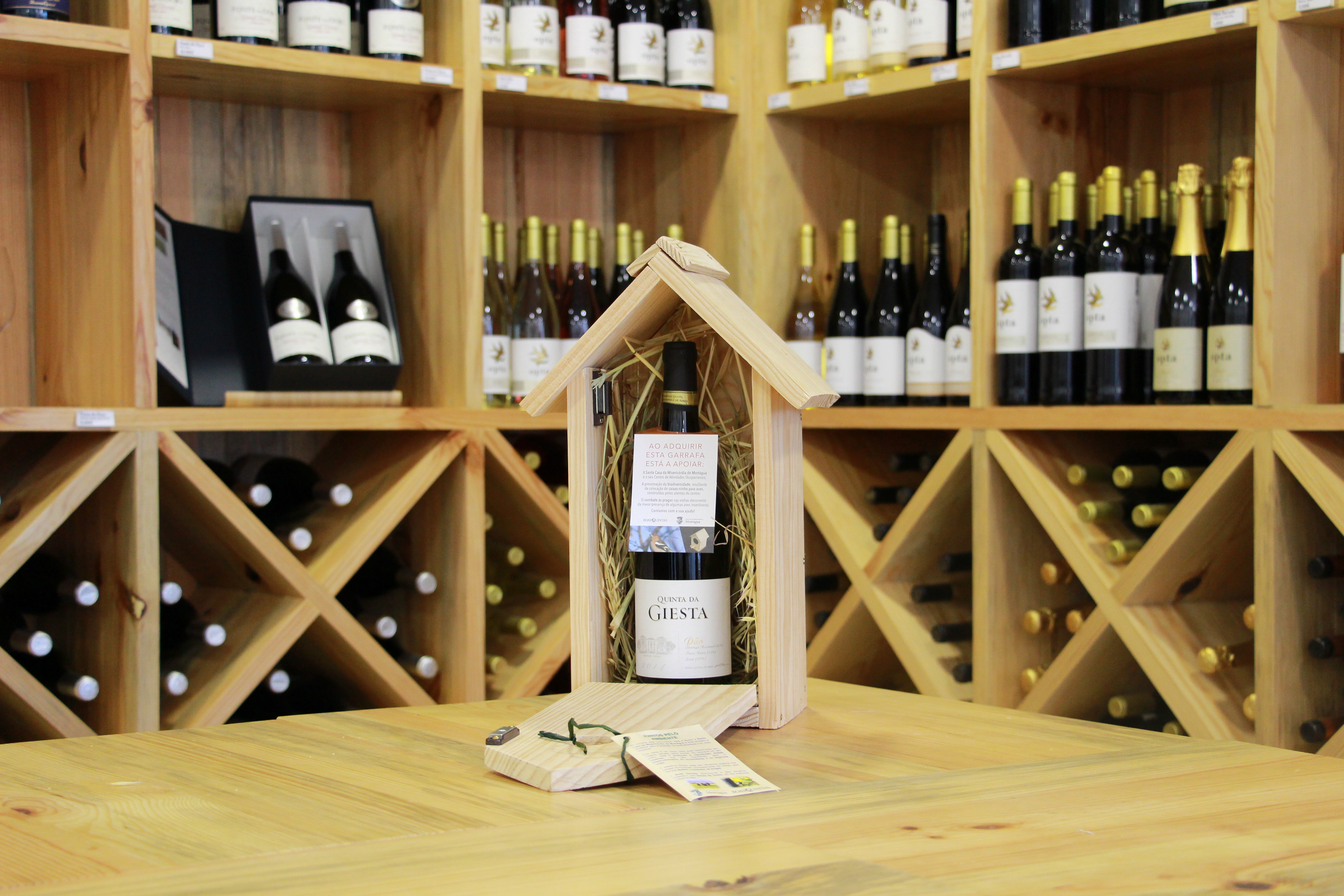 Cada ninho é vendido com uma garrafa Quinta da Giesta no seu interior. Existe também uma versão em kit, criada para incentivar os adultos a construírem “casinhas de pássaros” com as crianças, incutindo-lhes sensibilidade ambiental, de uma forma lúdica.