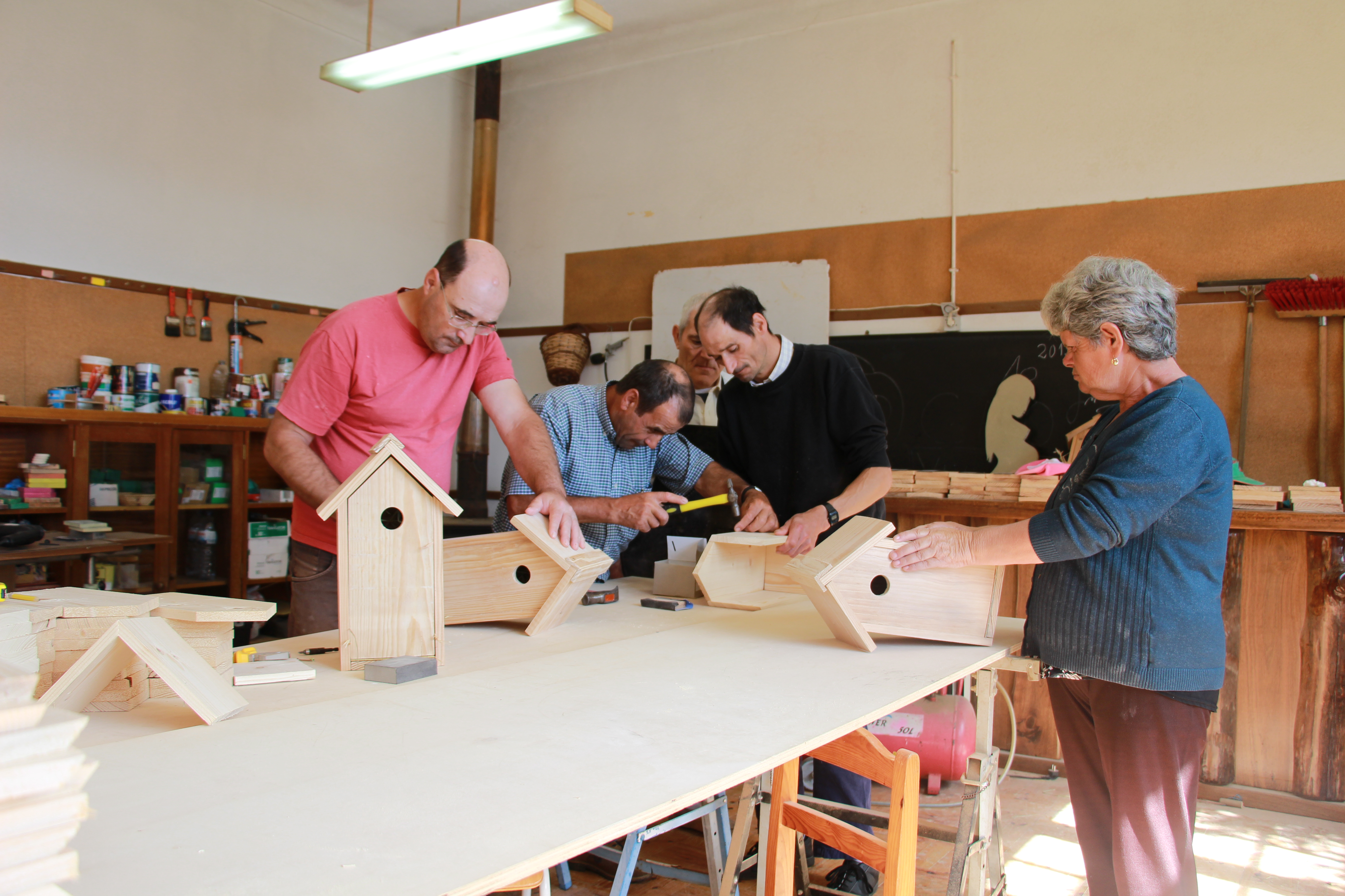 • A construção das caixas-ninho, efetuada em madeira, pelos utentes do Centro de Atividades Ocupacionais da Santa Casa da Misericórdia de Mortágua, contribui para o desenvolvimento das suas capacidades cognitivas e motoras.